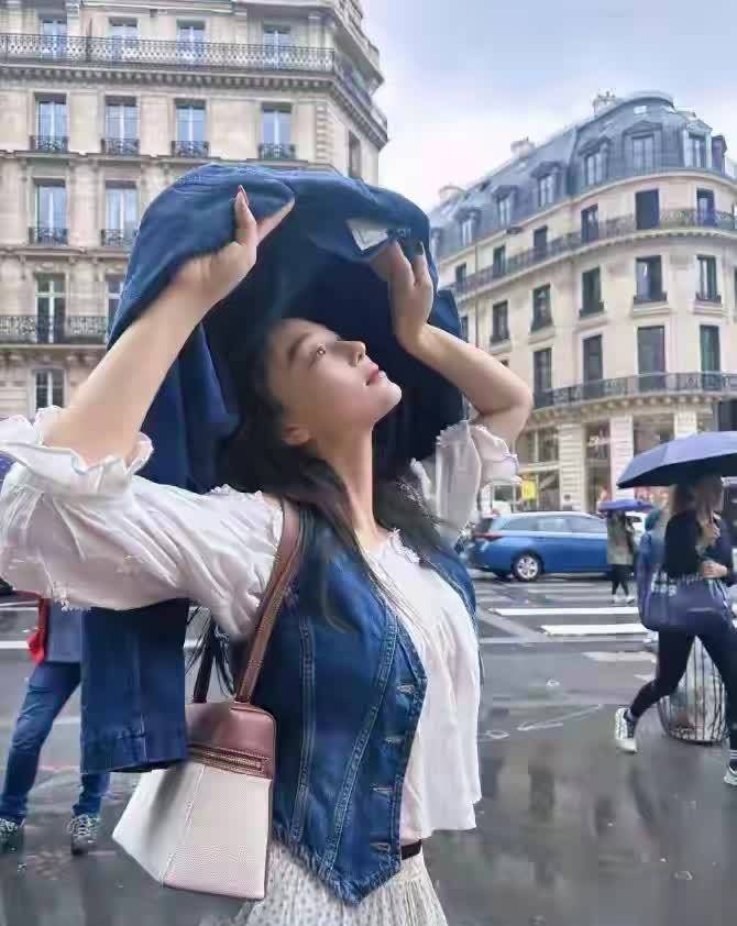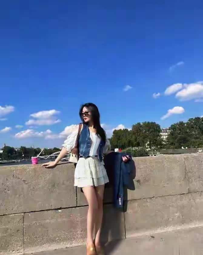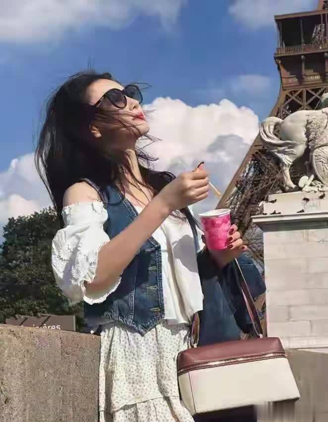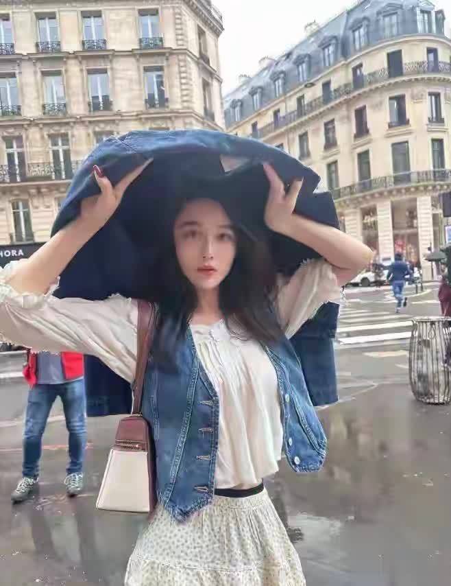 张馨予现身巴黎街头,一身白上衣搭牛仔马甲,随性穿搭直接把气质拉满,简单又高级。